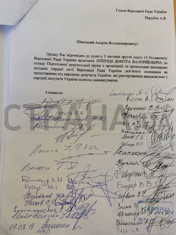 В документе они просят ввести в состав подготовительной группы Дмитрия Лубинца (по данным "Страны" - человек Авакова).
