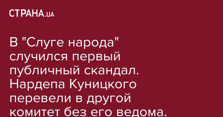 В пропрезидентской партии "Слуга народа" произошел первый публичный внутренний конфликт. Народного депутата от СН Александра Куницкого, который, по предварительным данным, должен был стать заместителем главы комитета по вопросам обеспечения правоохранительной деятельности, без его ведома перевели в другой документ.