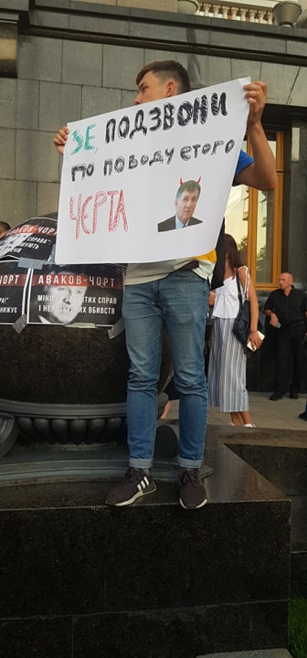 "Аваков – черт. Арсен Аваков – министр слитых дел и нераскрытых убийств. Ему не место в Кабмине. Ему не место во власти. Никаких должностей. Только посадки... Выйдем напомнить [президенту Украины] Владимиру Зеленскому о "достижениях" Авакова на должности министра", – сказано в сообщении.