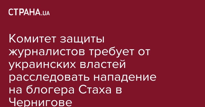 Международный Комитет защиты журналистов заявляет, что украинские власти должны немедленно расследовать нападение на блогера и журналиста Игоря Стаха, которого избили 29 августа в Чернигове. Об этом сказано в заявлении на сайте организации.