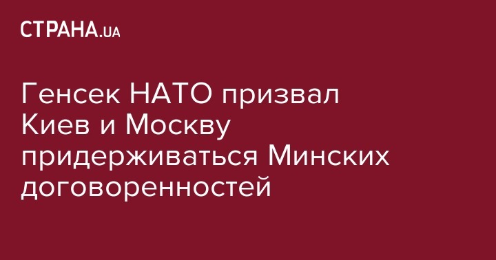 НАТО обратилось к сторонам конфликта на Донбассе с призывом выполнять договоренности, достигнутые в Минске (Беларусь) в феврале 2015 года.  Такое заявление сделал генеральный секретарь альянса после заседания комиссии "Украина - НАТО", пишут "Украинские новости".