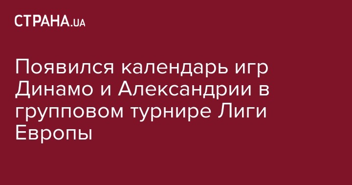 Стало известно расписание матчей группового этапа Лиги Европы, в котором сыграют два украинских клуба - киевское "Динамо" и "Александрия".