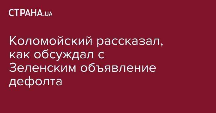 Украинский бизнесмен Игорь Коломойский сообщил, что обсуждал возможное объявление дефолта Украиной с Владимиром Зеленским прошлой осенью - после того, как тот принял решение участвовать в выборах. Об этом он рассказал в интервью "Цензор.Нет".