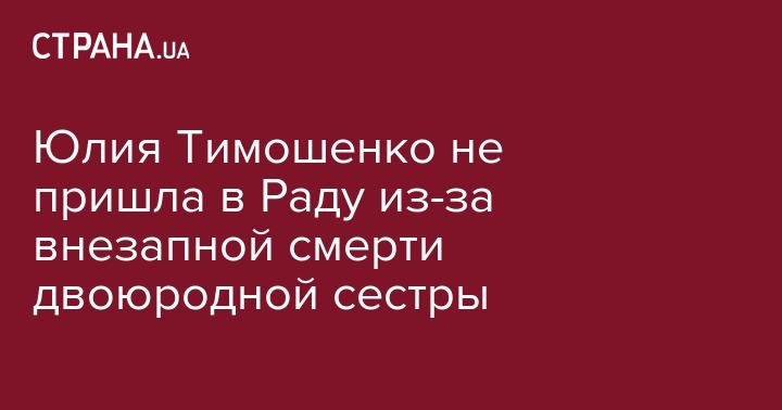 Лидер фракции "Батькивщина" Юлия Тимошенко пропустила 3 сентября заседание Верховной Рады из-за смерти двоюродной сестры Татьяны Шараповой. Об этом сообщает источник "Страны".