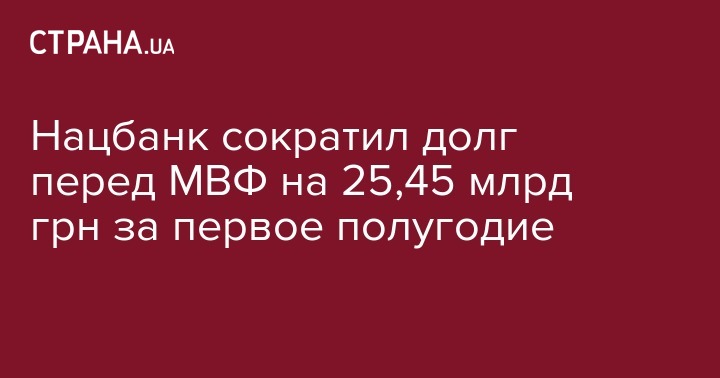 Нацбанк Украины за первое полугодие текущего года на 25,45 млрд грн сократил обязательства перед Международным валютным фондом. Об этом свидетельствует промежуточный финансовый отчет, обнародованный НБУ