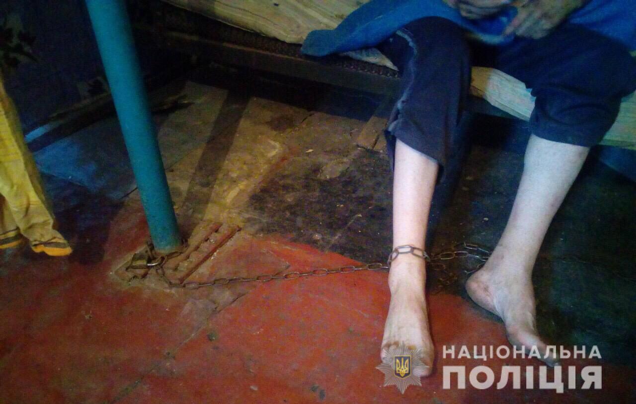 Сообщается, что событие произошло в Солонянском районе Днепропетровском области. Местные жители позвонили в полицию и сообщили, что их соседка держит на цепи собственного сына. Прибывшие на место правоохранители выяснили, что 36-летнего с группой инвалидности родственники удерживали его для получения пенсии.