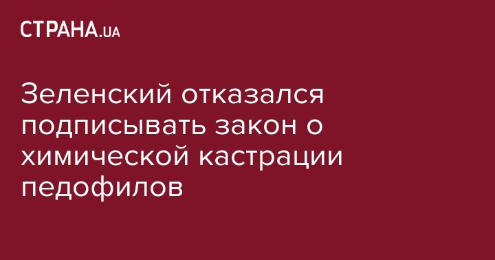 Президент Украины Владимир Зеленский не стал подписывать законопроект об ответственности за развращение и изнасилование несовершеннолетних, который предусматривает принудительную химическую кастрацию, он вернул его в парламент. Об этом свидетельствует информация в карточке законопроекта на сайте Рады