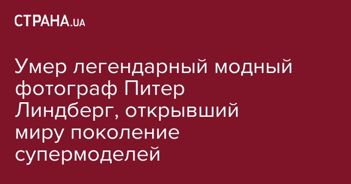 "С большой грустью мы объявляем о кончине Петера Линдберга", - говорится в сообщении. Причина смерти не называется. У модного фотографа остались супруга, четыре сына и семь внуков.