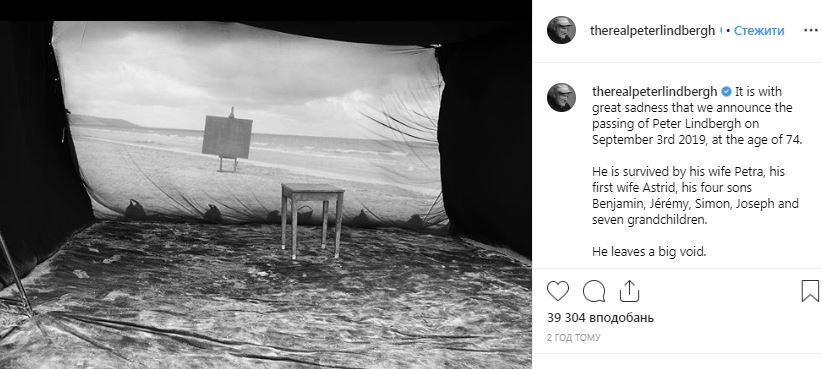 В возрасте 74 лет ушел из жизни известный немецкий фэшн-фотограф Питер Линдберг. Об этом сообщается на странице Линдберга в Instagram.