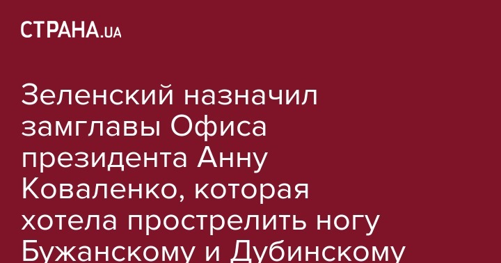 Зеленский назначил замглавы Офиса президента Анну Коваленко, которая хотела прострелить ногу Бужанскому и Дубинскому