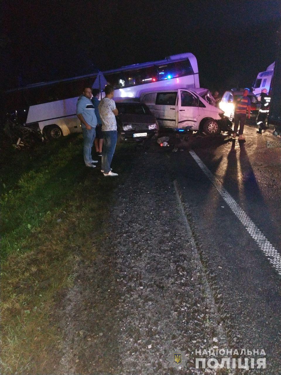 "4 сентября в 20.59, на автодороге Киев - Чоп вблизи с. Дидилов Камянко-Бугского района произошло столкновение микроавтобуса, легкового автомобиля и пассажирского автобуса (перевозил 49 человек, из них 45 детей), в результате чего погиб 1 человек (водитель микроавтобуса, гражданин Германии) и пострадали 13 человек (из них 11 детей 2005-2009 г.р.), которых госпитализировали в больницу", - говорится в сообщении. Отмечается, что от ГосЧС привлекались 20 человек и 5 единиц техники.