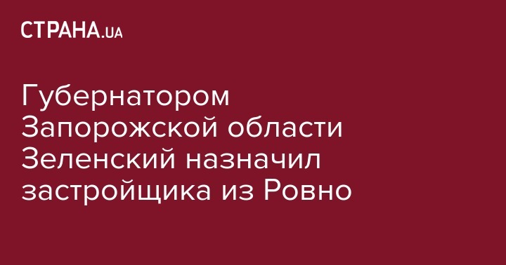 Губернатором Запорожской области Зеленский назначил застройщика из Ровно