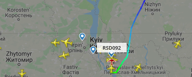 Сообщается, что вылетят русский ТУ-204 (RA-64058) и украинский Ан-148 (UR -UKR). Обратный вылет запланирован на 12:00-12:15.