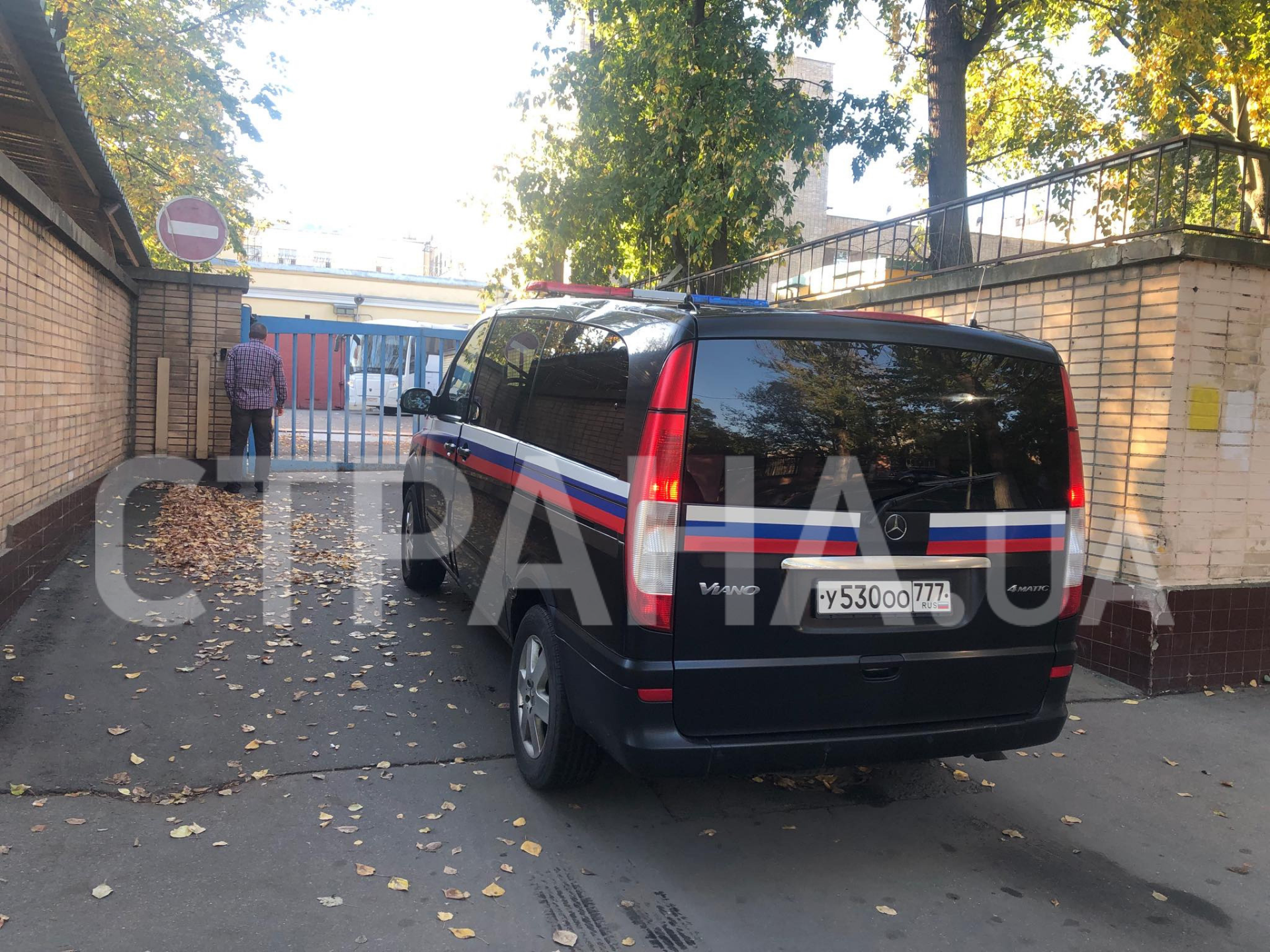 Корреспонденту "Страны" удалось сфотографировать белый автобус у стен СИЗО, на котором в аэропорт могут повезти удерживаемых украинцев.