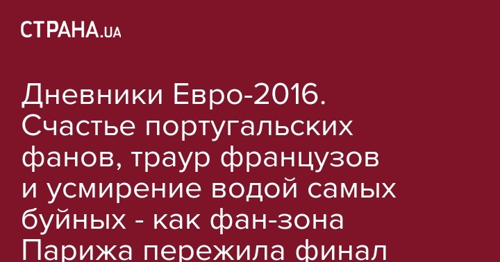 Дневники Евро-2016. Счастье португальских фанов, траур французов и усмирение водой самых буйных - как фан-зона Парижа пережила финал