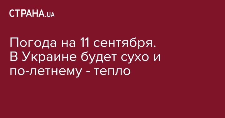 В среду, 11 сентября, в Украине ожидается солнечная и теплая погода, осадков не прогнозируется ни в одном регионе страны. Об этом свидетельствует прогноз, размещенный на сайте Укргидрометцентра.