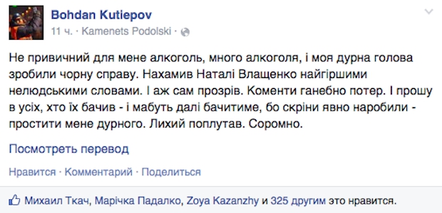 Скандальное заявление Кутепов сделал на своей странице в Facebook.