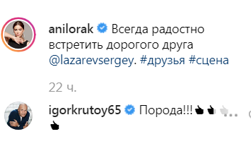 В комментариях отметился композитор Игорь Крутой, коротко высказавшийся: "Порода!"