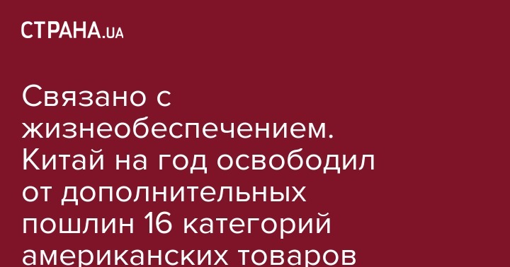Связано с жизнеобеспечением. Китай на год освободил от дополнительных пошлин 16 категорий американских товаров