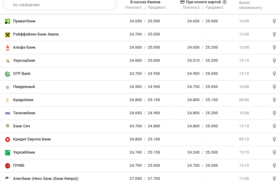 В Приватбанке котировки такие: 24,65 грн - покупка и 25,05 - продажа.