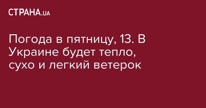 В пятницу, 13 сентября, в Украине прогнозируют жаркую солнечную погоду днем и осеннюю прохладу ночью. Ожидается ветер переменных направлений, 3-8 м / с. Об этом сообщает Укргидрометцентр.