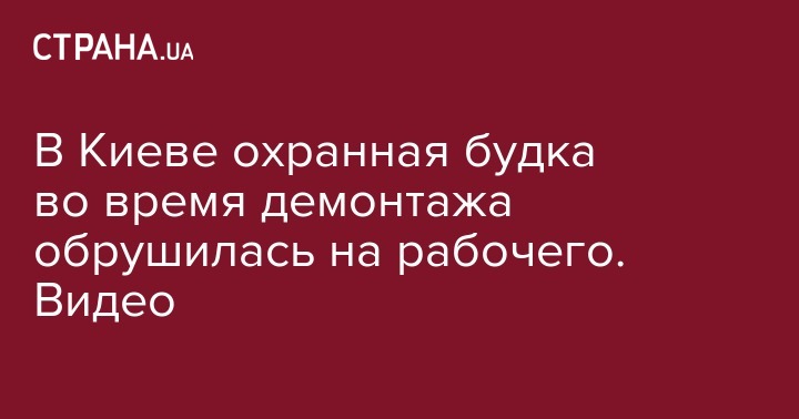 В Киеве охранная будка во время демонтажа обрушилась на рабочего. Видео
