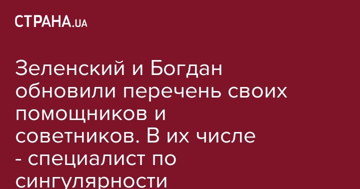 Зеленский и Богдан обновили перечень своих помощников и советников. В их числе - специалист по сингулярности