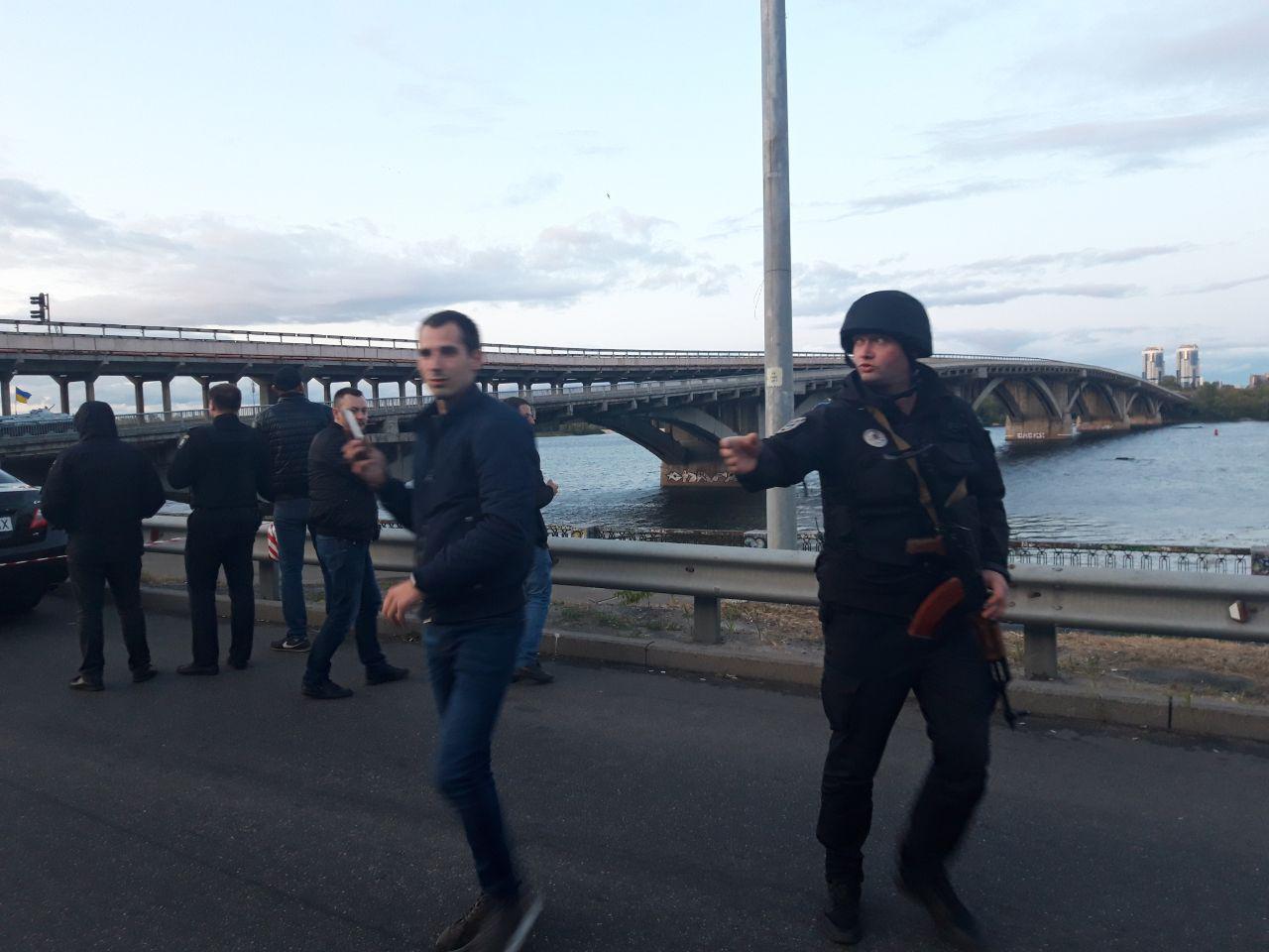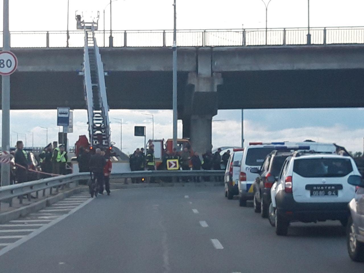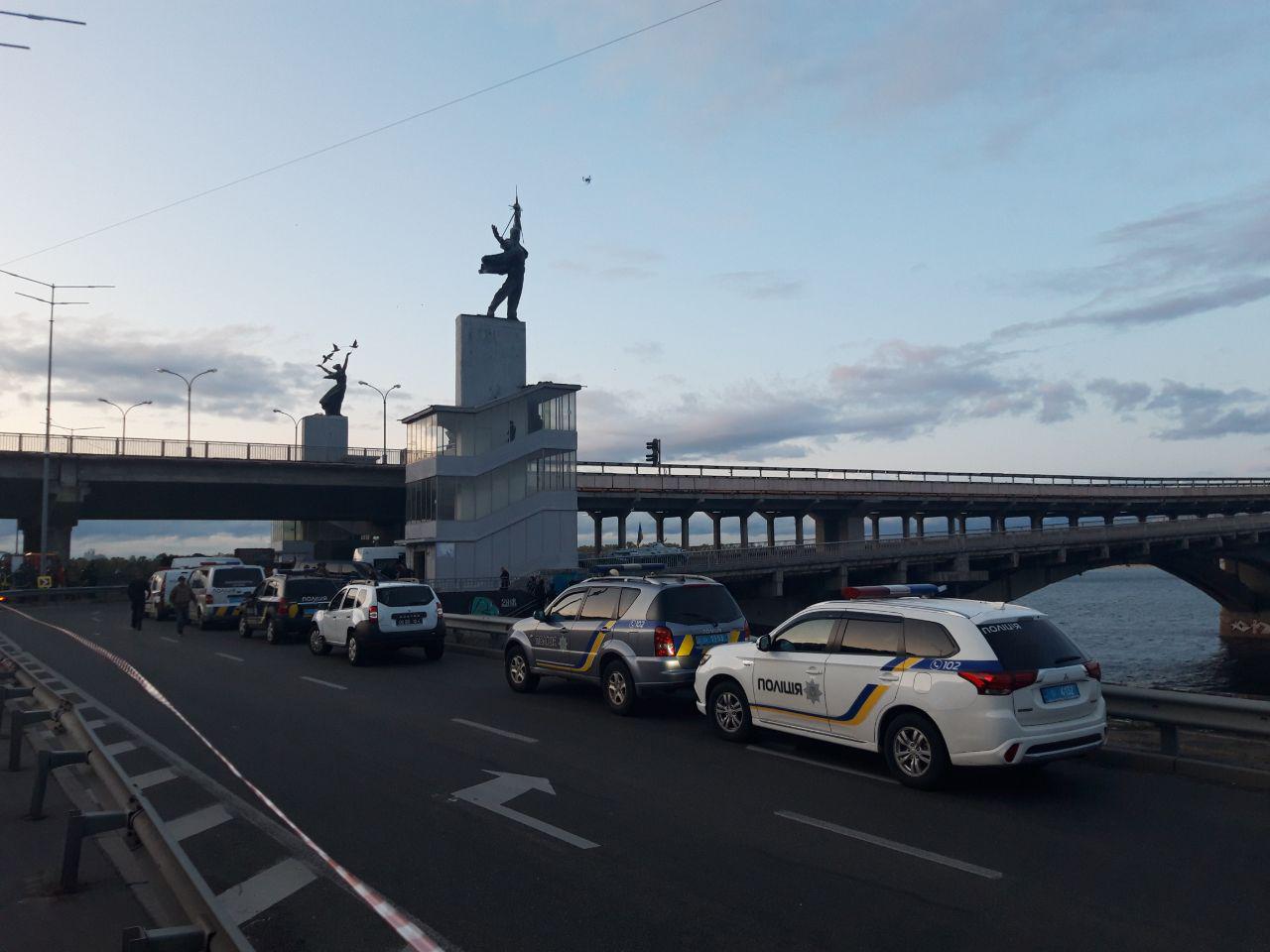 Как сообщалось ранее, в Киеве перекрыли мост Метро. Мужчина заехал на мост, остановился посреди него, вышел и угрожает его взорвать. Следователи столичной полиции квалифицируют инцидент как подготовку к террористическому акту. На мосту Метро находятся наряды патрульных, кинологи со служебными собаками, спецназ и специалисты взрывотехнической службы.