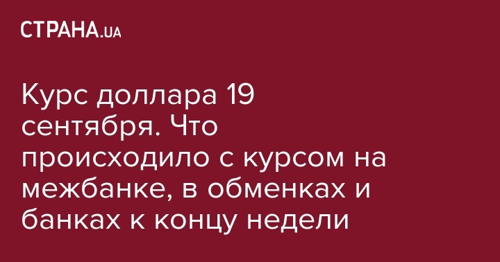 19 сентября НБУ снизил курс доллара на 10 копеек - до 24,66 грн. В обменках доллар вечером покупают за 24,55 грн, продают за 24,60 грн. Межбанк открылся с 10:00 и к вечеру показал такие котировки: 24,55 грн - покупка и 24,57 грн - продажа. В целом, за день доллар снизился в обменках на 8 копеек, на межбанке - на 10 копеек. В банках вечером доллар покупают от 24,30 до 24,65 грн и продают от 24,56 до 25,10 грн. В Приватбанке стоимость валюты за день также снизилась на 10 копеек: покупка - 24,45 грн, продажа - 24,80 грн.