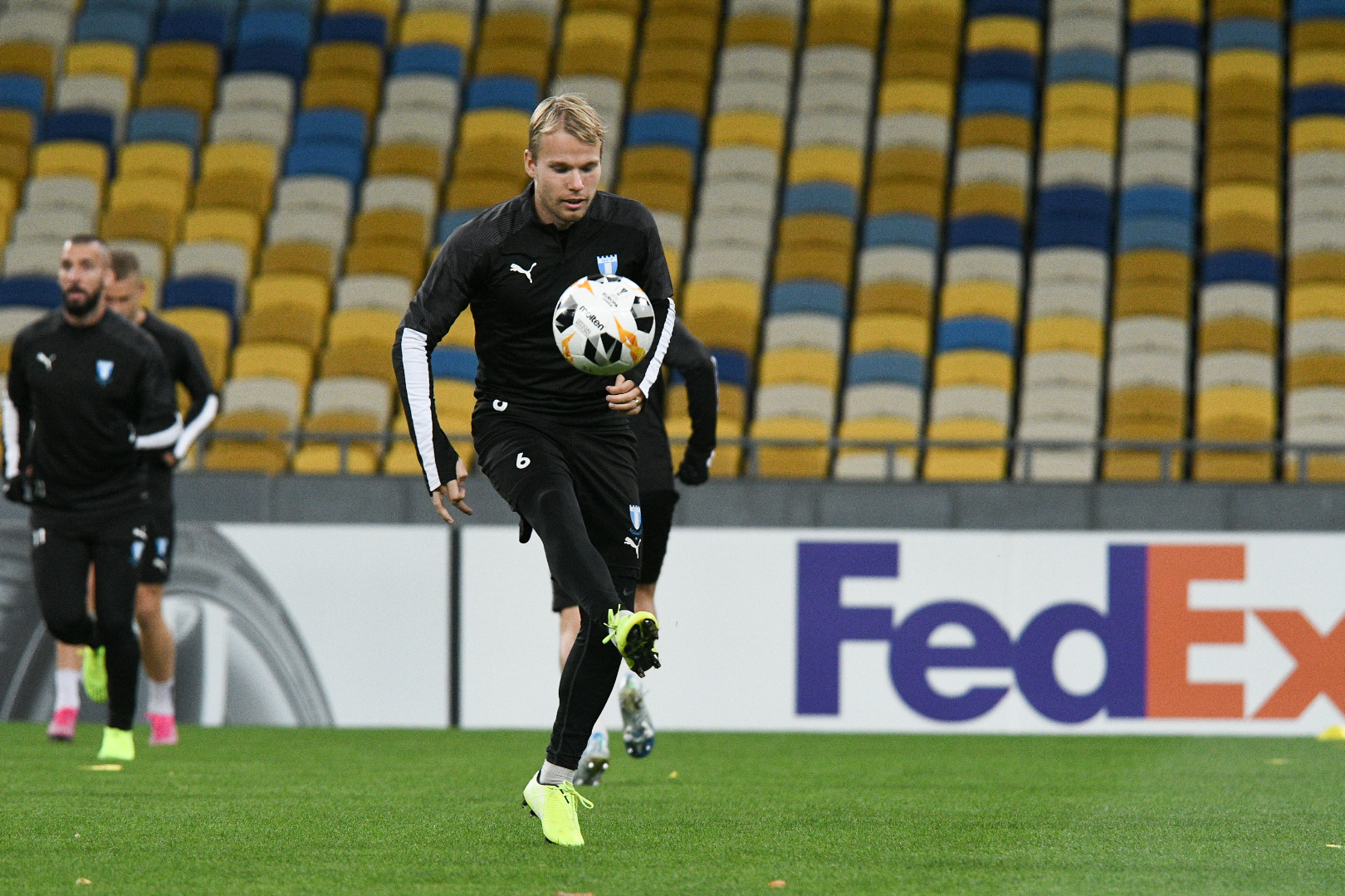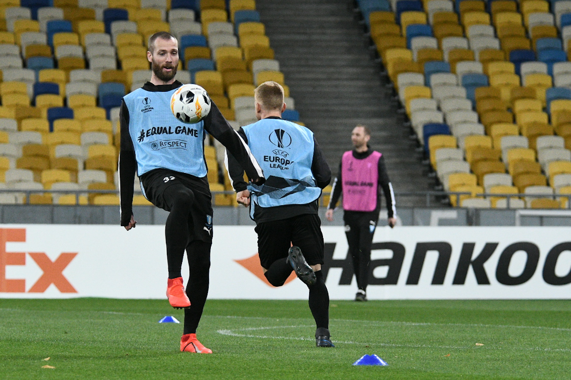 Рейс прибыл в аэропорт Борисполь с задержкой, поэтому вечерняя предматчевая тренировка началась на час позже запланированного. Разместившись в гостинице Fairmont Grand Hotel, шведы и на НСК "Олимпийский" прибыли ис опозданием. Больше всего внимания пресса конечно же уделили капитану и ветерану Мальме Маркусу Розенбергу. А единственной потерей перед матчем с "бело-синими" является отсутствие Франса Брурссона, передает пресс-служба нашего клуба.
