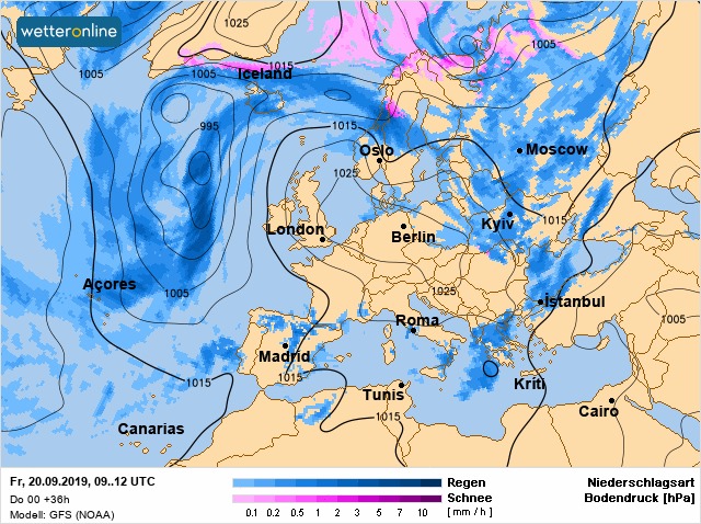 Ветер в Украине будет северо-западного направления, 5-12 м/с, а в западной части Украины возможны штормовые порывы до 15-20 м/с. В Киеве пятница будет облачной, с дождем и низкой температурой воздуха около +12, +13 градусов. Вечером и ближайшей ночью похолодает до +7...+9 градусов. А в ночь на субботу в Киеве похолодает до +3, +4 градусов. Поэтому на окраинах при прояснении возможны заморозки 0...-3 градуса.