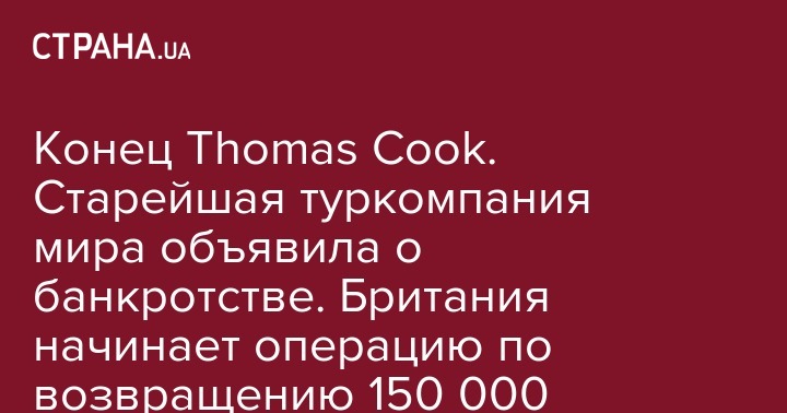 Конец Thomas Cook. Старейшая туркомпания мира объявила о банкротстве. Британия начинает операцию по возвращению 150 000 туристов