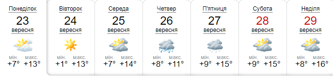 "Страна" собрала всю информацию о предстоящей погоде на неделю - с 23 по 29 сентября - по данным шести погодных ресурсов.