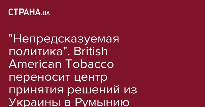 Компания British American Tobacco переформатирует структуру управления бизнесом в Восточной Европе. Если раньше Украина была центром региона, включающего 12 стран, то с 2020 года украинский офис будет включен в другой регион с центром принятия решений в Румынии. Об этом сообщили в компании, пишет НВ Бизнес.