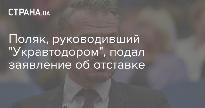 И.о. главы Государственного агентства автомобильных дорог Украины ("Укравтодор") Славомир Новак подал премьер-министру Алексею Гончаруку заявление об отставке в связи с окончанием своей трехлетней каденции, сообщила пресс-служба агентства во вторник вечером.