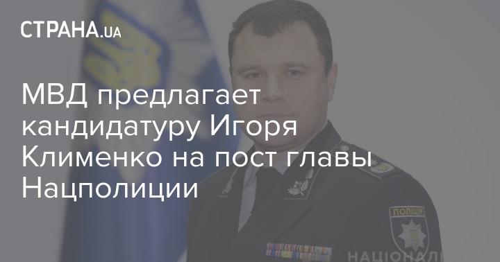 Министерство внутренних дел Украины предлагает назначить новым главой Нацполиции Игоря Клименко. Об этом в Facebook сообщил нардеп от фракции "Европейская солидарность" Алексей Гончаренко.