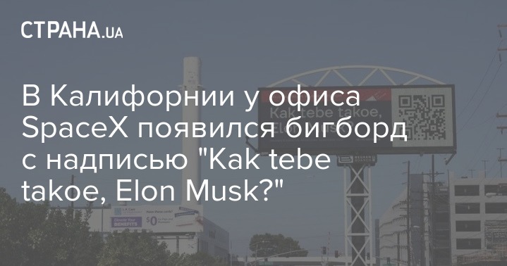В Калифорнии у офиса SpaceX появился бигборд с надписью "Kak tebe takoe, Elon Musk?"