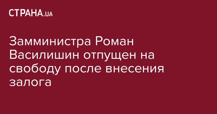 Замминистра здравоохранения Роман Василишин уже освобожден из-под стражи благодаря внесению определенного судом залога в сумме 2 млн 856 грн.
