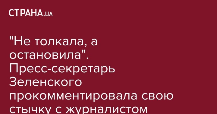 Пресс-секретарь Владимира Зеленского заявила, что она не толкала, а "останавливала" журналиста Сергея Андрушко, который хотел задать вопрос Зеленскому. Об этом она заявила в Facebook.