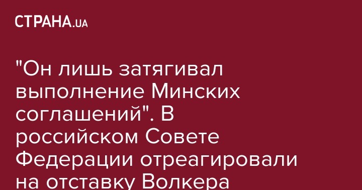 "Он лишь затягивал выполнение Минских соглашений". В российском Совете Федерации отреагировали на отставку Волкера
