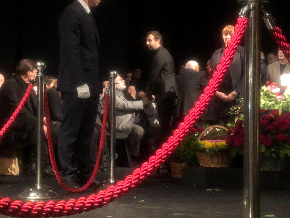 В самом начале церемонии пришел министр культуры РФ Владимир Мединский. Он положил к гробу букет роз и сел рядом с близкими покойного. Вскоре пришел мэр Москвы Сергей Собянин, он поцеловал дочь Захарова Александру, высказал ей слова соболезнования и они с Мединским вместе ушли.