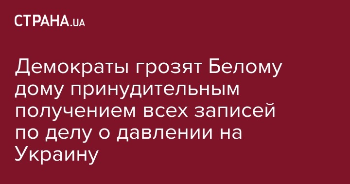 Демократы в Палате представителей США пригрозили Белому дому принудительным получением (через официальную повестку) записей, связанных с возможным давлением президента Трампа на Украину, поскольку администрация проигнорировала просьбу о добровольном предоставлении этих документов.