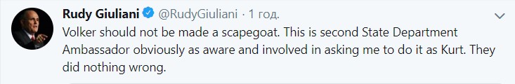 "Волкер не должен быть козлом отпущения", - написал личный адвокат Трампа в Twitter.