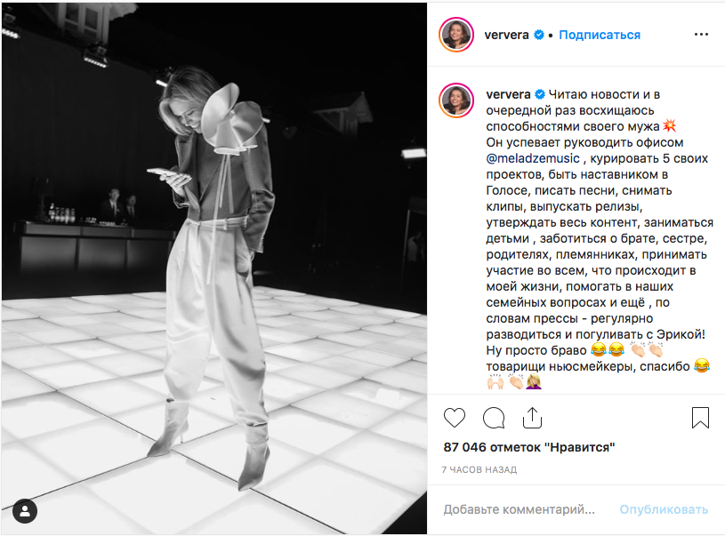 Подписчики Инстаграма Веры Брежневой злорадствуют по поводу слухов о романе продюсера с Герцег.