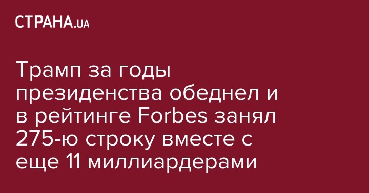 Трамп за годы президенства обеднел и в рейтинге Forbes занял 275-ю строку вместе с еще 11 миллиардерами