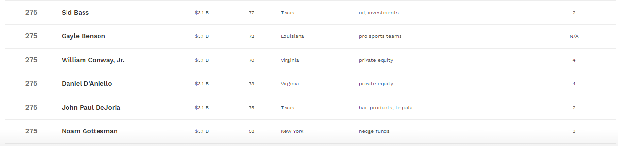 Стоит отметить, что Дональд Трамп делит отведенное ему 275 место с еще одиннадцатью миллиардерами, состояние которых оценивается также в $3,1 млрд.