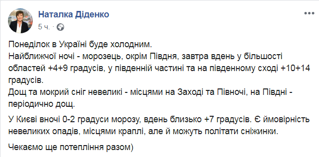 Диденко заканчивает свой пост на оптимистической ноте - предвкушением потепления.