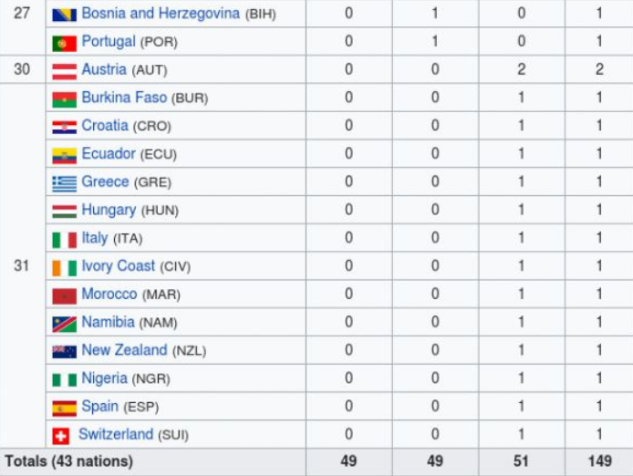 Общий медальный зачет ЧМ по легкой атлетике-2019