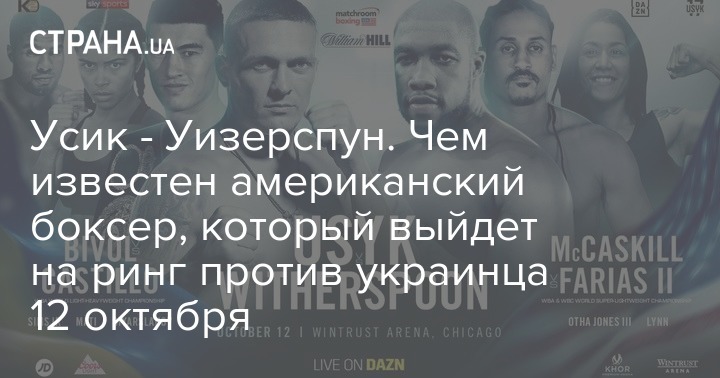 В профессиональной копилке Уизерспуна 38 побед (29 - нокаутом) и 3 поражения. По габаритам он практически такой же, как Усик, 193 сантиметра роста против 191 см у нашего боксера.
