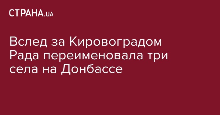Вслед за Кировоградом Рада переименовала три села на Донбассе